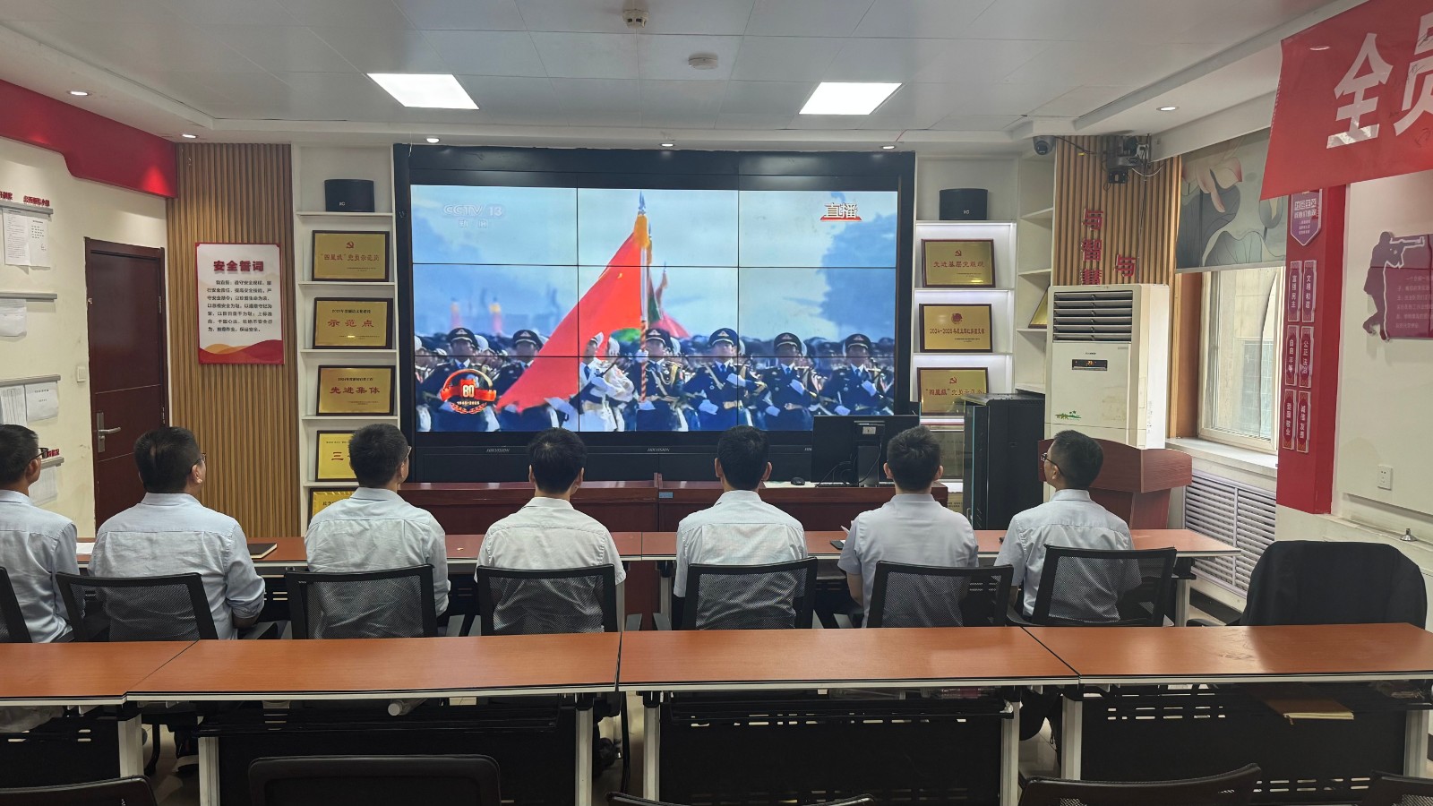 歷史燭照未來,精神永續(xù)傳承。為深切緬懷在抗日戰(zhàn)爭(zhēng)中英勇獻(xiàn)身的革命先烈,大力弘揚(yáng)偉大的抗戰(zhàn)精神,引導(dǎo)全體黨員、職工銘記光輝歷史、堅(jiān)定理想信念、強(qiáng)化責(zé)任擔(dān)當(dāng),9月3日,機(jī)運(yùn)工區(qū)黨支部組織開展了“銘記歷史偉業(yè),傳承紅色基因”主題黨日活動(dòng),組織全體黨員集中觀看紀(jì)念中國人民抗日戰(zhàn)爭(zhēng)暨世界反法西斯戰(zhàn)爭(zhēng)勝利80周年閱兵儀式現(xiàn)場(chǎng)直播。上午九時(shí)整,機(jī)運(yùn)工區(qū)全體黨懷著無比崇敬與激動(dòng)的心情,目光齊聚屏幕。伴隨著激昂雄壯的國歌奏響,鮮艷的五星紅旗在天安門廣場(chǎng)冉冉升起,大家心潮澎湃,肅然起敬。隨后,規(guī)模宏大、氣勢(shì)磅礴的閱兵式正式開始。屏幕上,一個(gè)個(gè)整齊劃一、威武雄壯的徒步方隊(duì),邁著鏗鏘有力、撼人心魄的步伐走過檢閱臺(tái),堅(jiān)毅的眼神、挺拔的身姿,充分展現(xiàn)了新時(shí)代軍人聽黨指揮的忠誠品格和能打勝仗的過硬本領(lǐng);一列列代表著國家科技實(shí)力與國防現(xiàn)代化建設(shè)最新成果的裝備方隊(duì),鐵流滾滾,氣勢(shì)如虹,尖端武器依次亮相,彰顯了捍衛(wèi)國家主權(quán)、安全、發(fā)展利益的堅(jiān)定決心與強(qiáng)大能力;雄鷹呼嘯,劃破長(zhǎng)空,戰(zhàn)機(jī)編隊(duì)以精準(zhǔn)的隊(duì)形和磅礴的氣勢(shì)接受檢閱,描繪出壯美的藍(lán)天畫卷,宣示著捍衛(wèi)國家領(lǐng)空安全的鋼鐵意志。整個(gè)閱兵過程,秩序井然、威武雄壯、氣勢(shì)恢宏,生動(dòng)詮釋了人民軍隊(duì)“聽黨指揮、能打勝仗、作風(fēng)優(yōu)良”的強(qiáng)軍目標(biāo),全方位展示了在黨的堅(jiān)強(qiáng)領(lǐng)導(dǎo)下,國家日益強(qiáng)大的綜合國力和維護(hù)世界和平的堅(jiān)定信念。屏幕前,黨員們?nèi)褙炞ⅲ瑹o不被這震撼人心的場(chǎng)面所感染,民族自豪感與榮譽(yù)感油然而生,現(xiàn)場(chǎng)不時(shí)響起由衷的贊嘆和熱烈的掌聲。通過本次“銘記歷史偉業(yè),傳承紅色基因”主題黨日活動(dòng),機(jī)運(yùn)工區(qū)黨支部全體黨員經(jīng)歷了一次深刻的精神淬煉與思想升華。大家的歷史使命感、民族自豪感、崗位責(zé)任感得到顯著增強(qiáng),紛紛表示以更加飽滿昂揚(yáng)的精神狀態(tài)、更加求真務(wù)實(shí)的工作作風(fēng)、更加開拓創(chuàng)新的進(jìn)取意識(shí),恪盡職守,銳意進(jìn)取,全力以赴保障原煤運(yùn)輸安全高效,為工區(qū)及公司的持續(xù)高質(zhì)量發(fā)展貢獻(xiàn)全部力量!